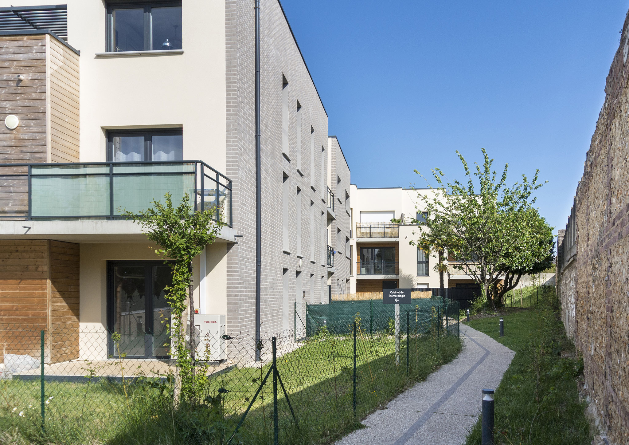 Le gabarit du bâtiment, en R+2, lui permet de rester en cohérence avec son environnement